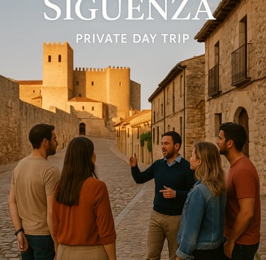 Just over an hour from Madrid, Sigüenza welcomes you with a hilltop castle, graceful cathedral, and streets paved in time. Our private day trip is designed for travelers who prefer beauty without the bustle—unhurried storytelling, photo time in peaceful squares, and comfortable logistics from start to finish.